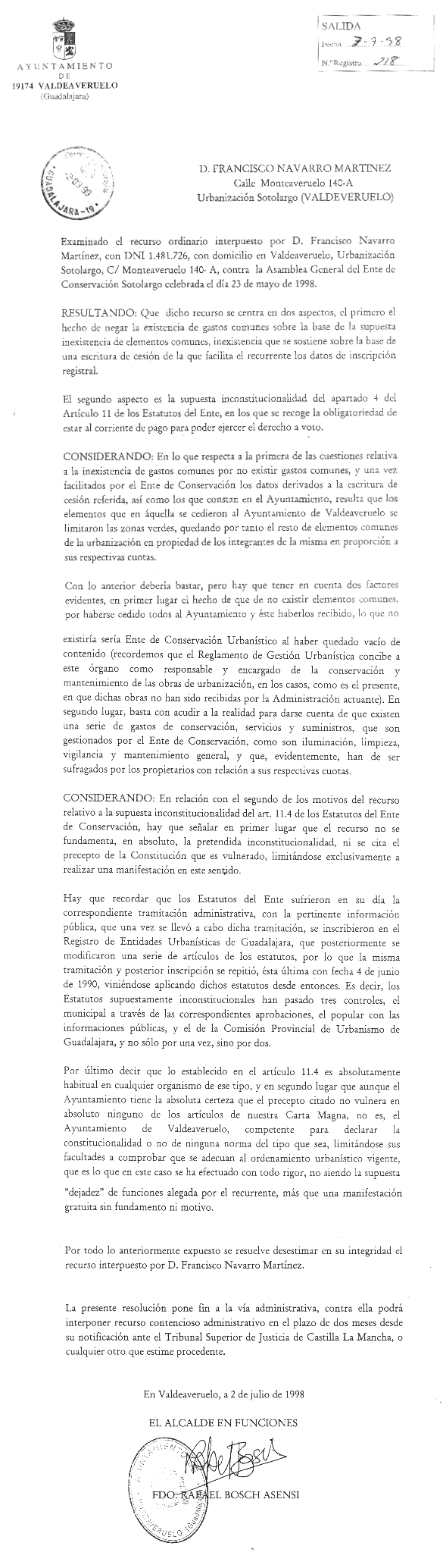 Teniente de Alcalde, resuelve el recurso como Alcalde en funciones: Ellos